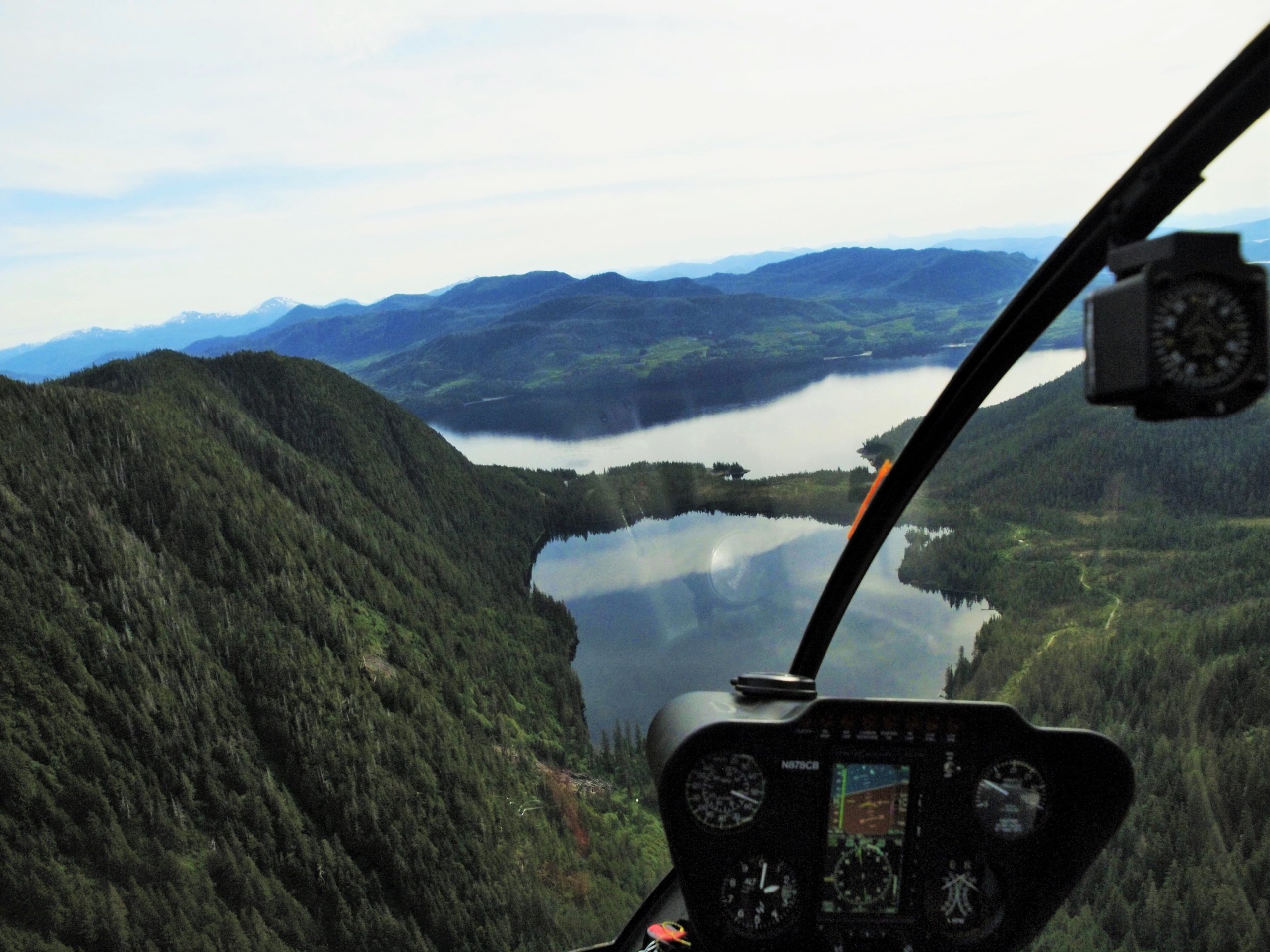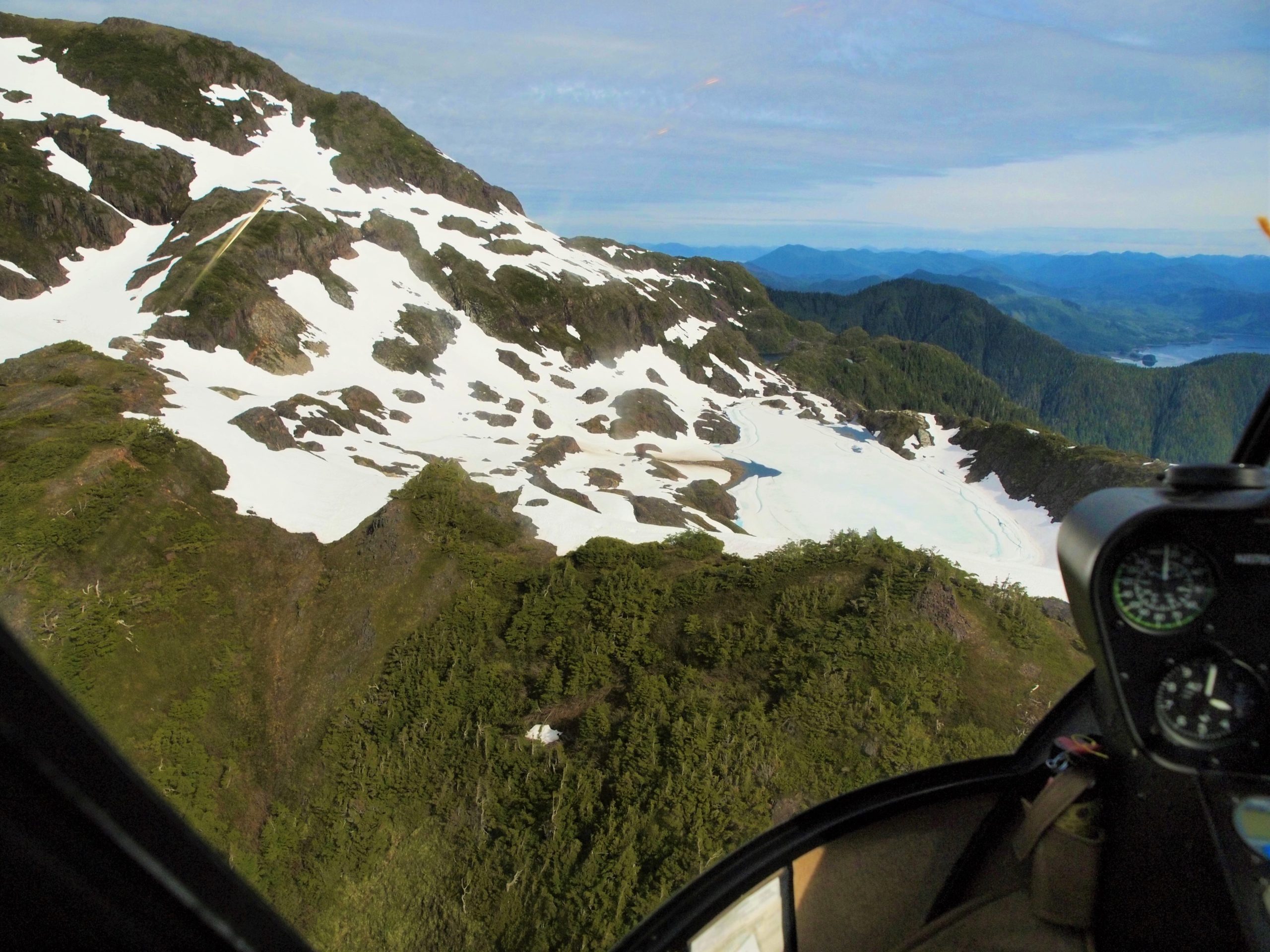 Ryan offered us some extra time in the air if we were open to leaving immediately. We were the only passengers for his 4-seater chopper anyway, and he shared that Ketchikan has over 300 days of cloudy skies each year. Turns out that this day was a rare, clear, blue-skied exception and Ryan wanted to make the most of the opportunity. Thinking about an even greater, higher view of the ground caused my stomach to jump into my throat as Eddie shouted, “you bet!” being just as excited as Ryan was.