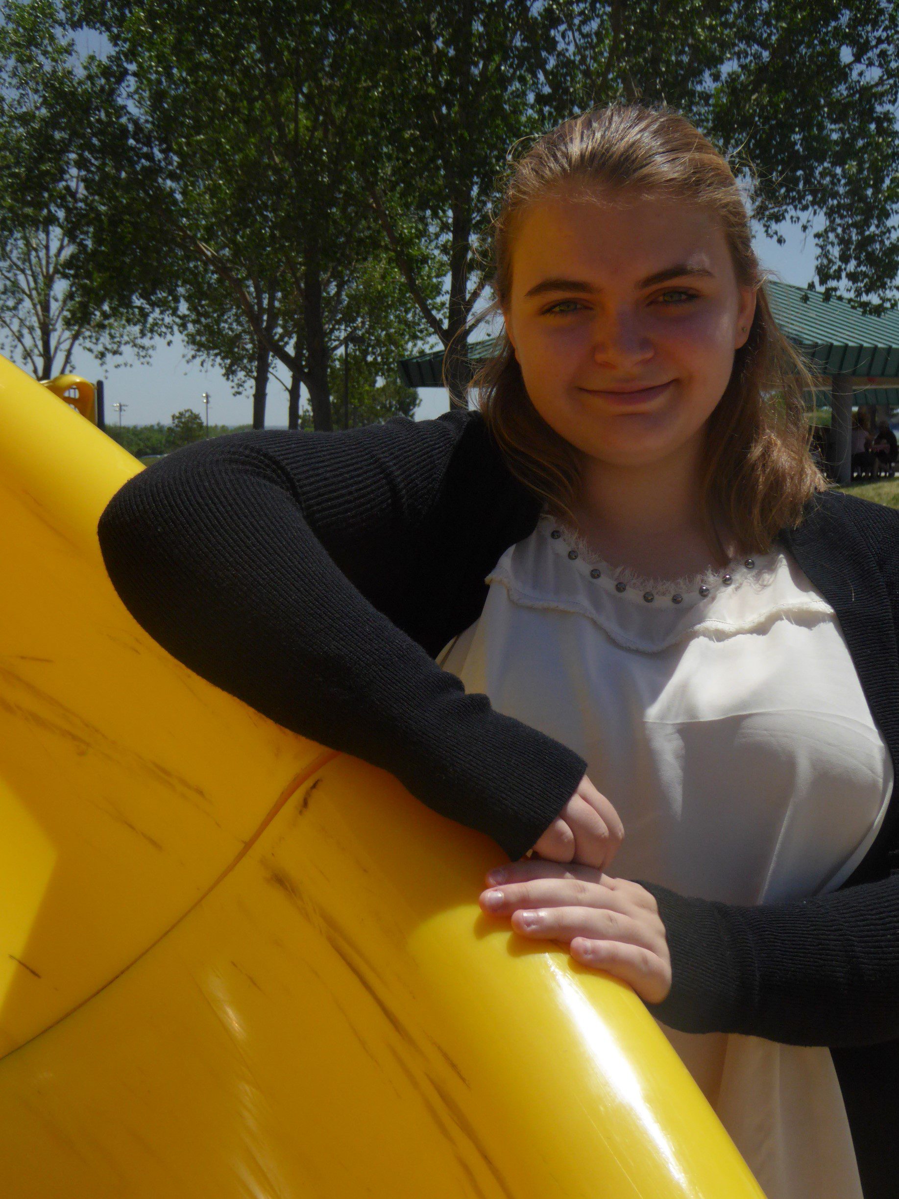 In the second shot – under the shade of a tree, Grace has no shadows on her face.