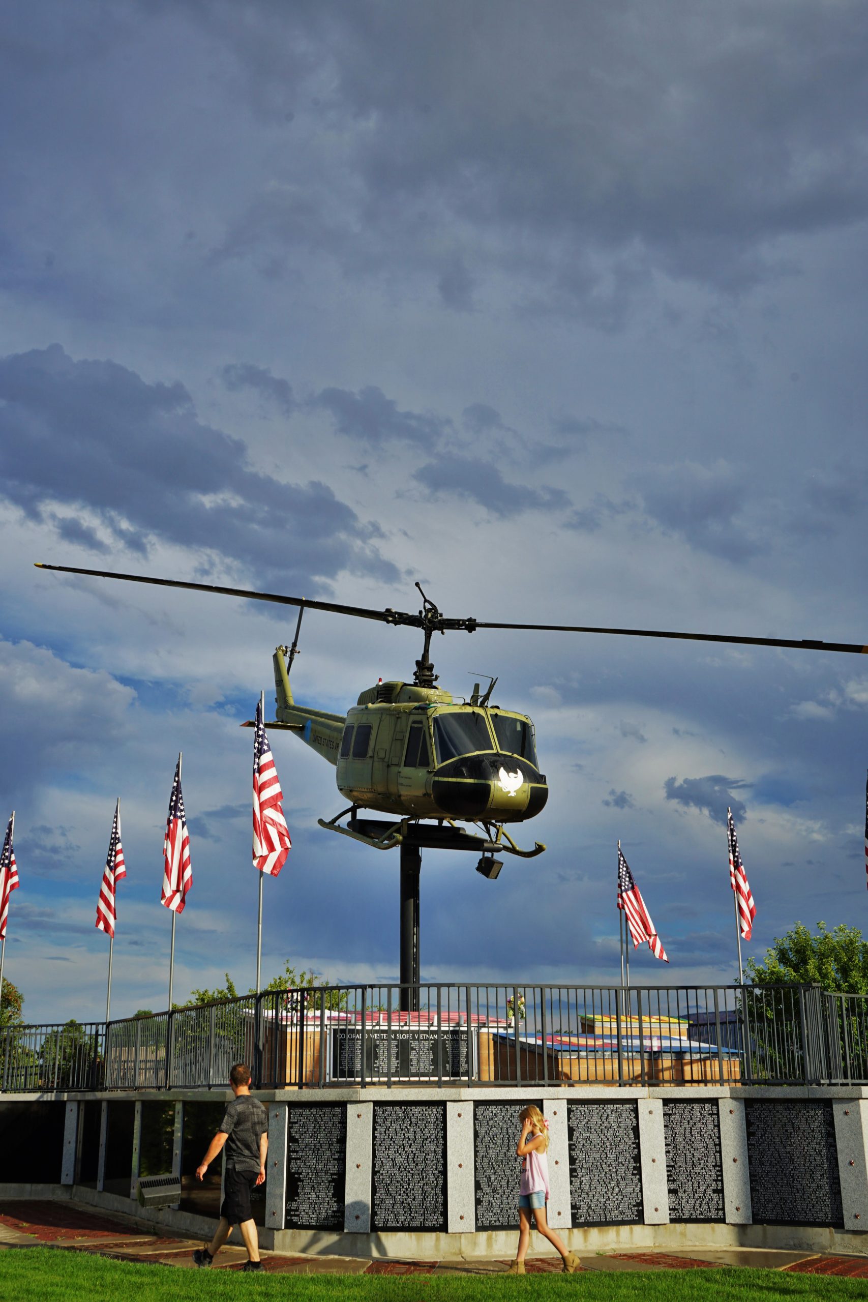 Colorado Welcome Center. Overlooking the memorial, is a TUH-1H Huey helicopter from Camp Robinson in Arkansas. The Huey is the symbol of the Vietnam Era, and the United States Army donated it for display. You can read more about the helicopter and how is was transported HERE.