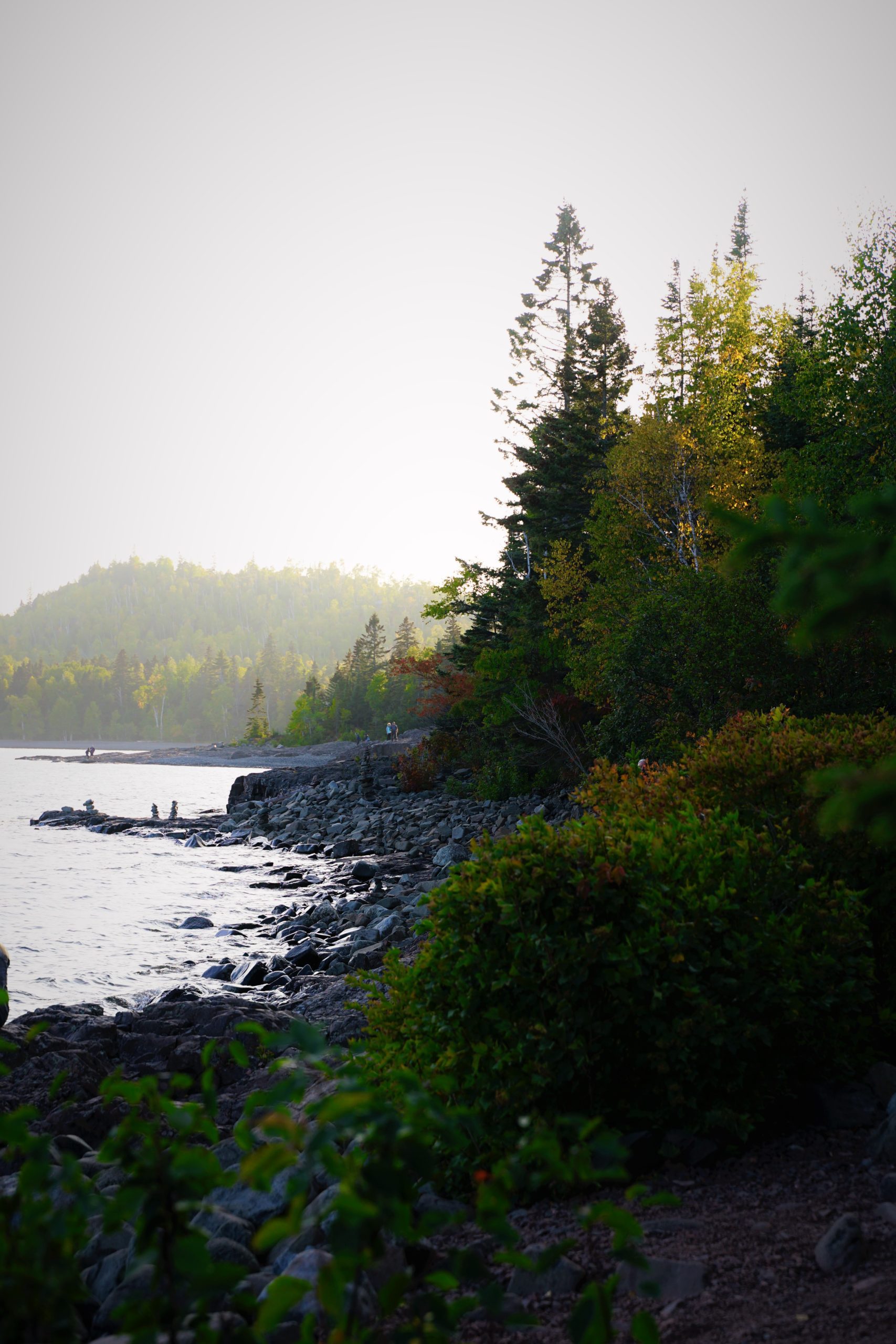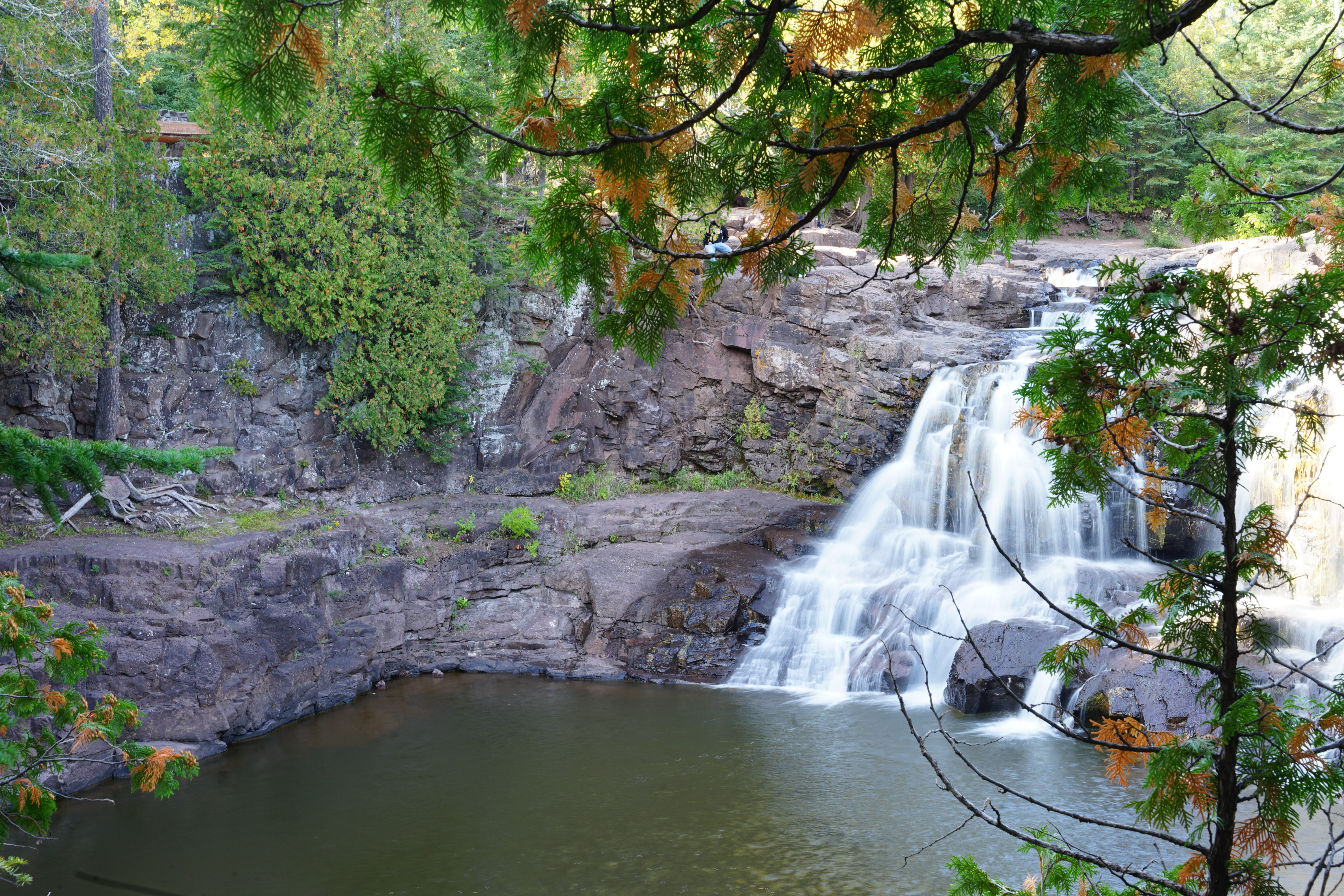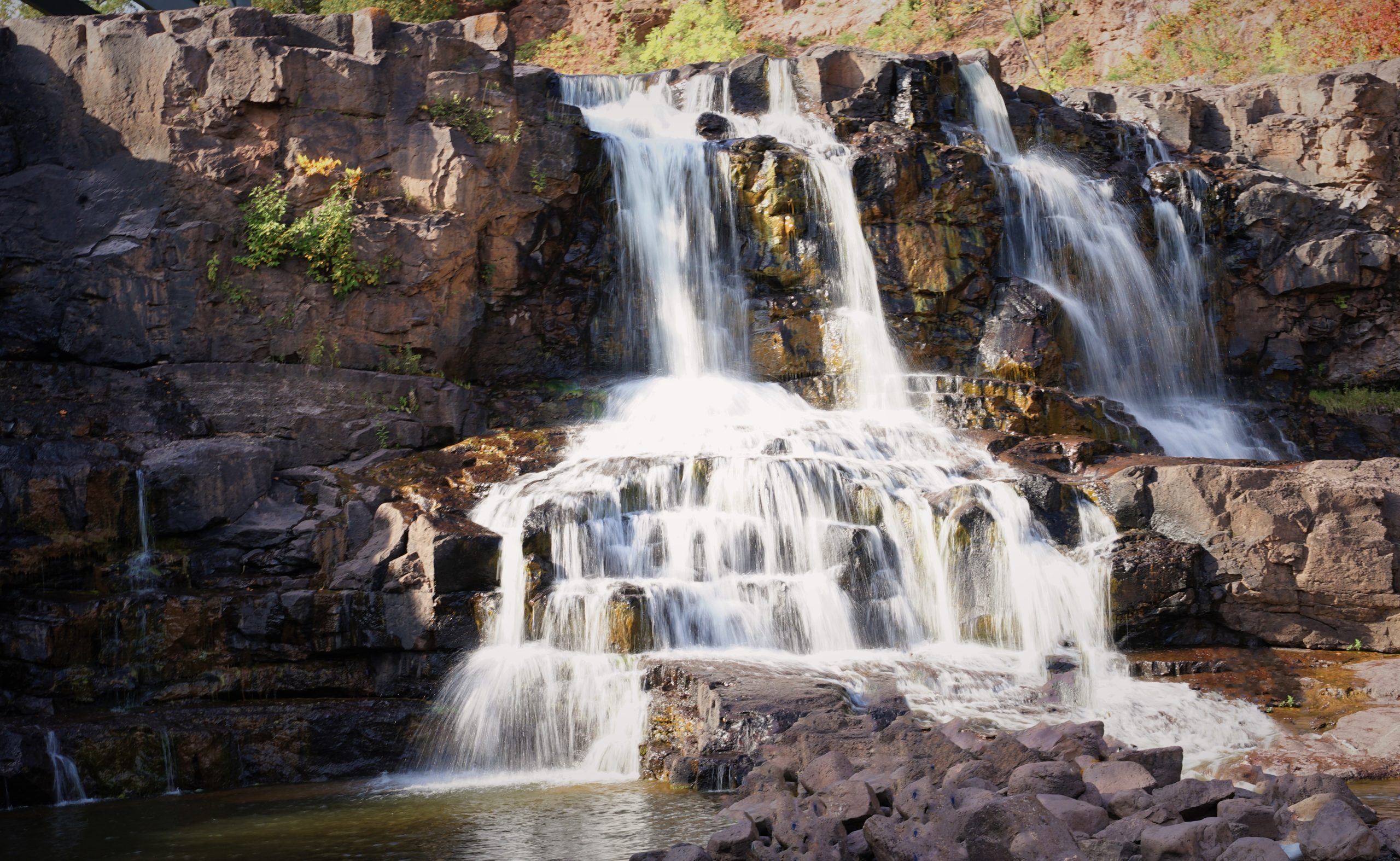 Iona’s Beach is truly a not-so-hidden gem. Not just because someone named Iona promised to keep coming back to her favorite spot on Lake Superior, but because the SNA (Scientific and Natural Area) deemed it ‘ecologically or geologically significant to Minnesota’. From the car, there is a short hike to the beach, and we were fortunate to see this trail in fall colors! This lovely beach is a 300-yd salmon and pink colored crescent. It was created by lava which poured from a fissure in the earth’s crust called the Mid-Continental Rift. When waves crash onto this beach, the rocks tumble against one another and create a high-pitched tinkling sound, thus earning Iona’s Beach the name ‘singing beach’. (More more info on Iona Beach, click HERE).